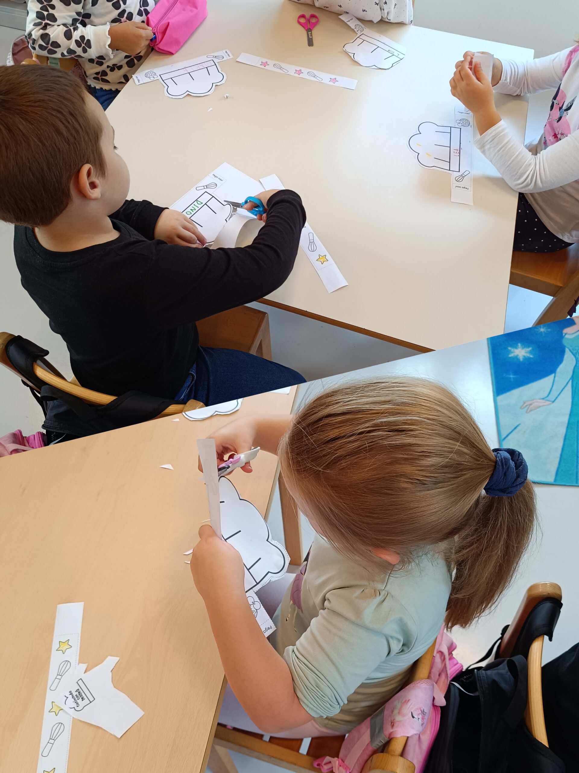 -> uparivali smo pekarske proizvode prema listiću, a ujedno i rezali škaricama te razvijali finu motoriku