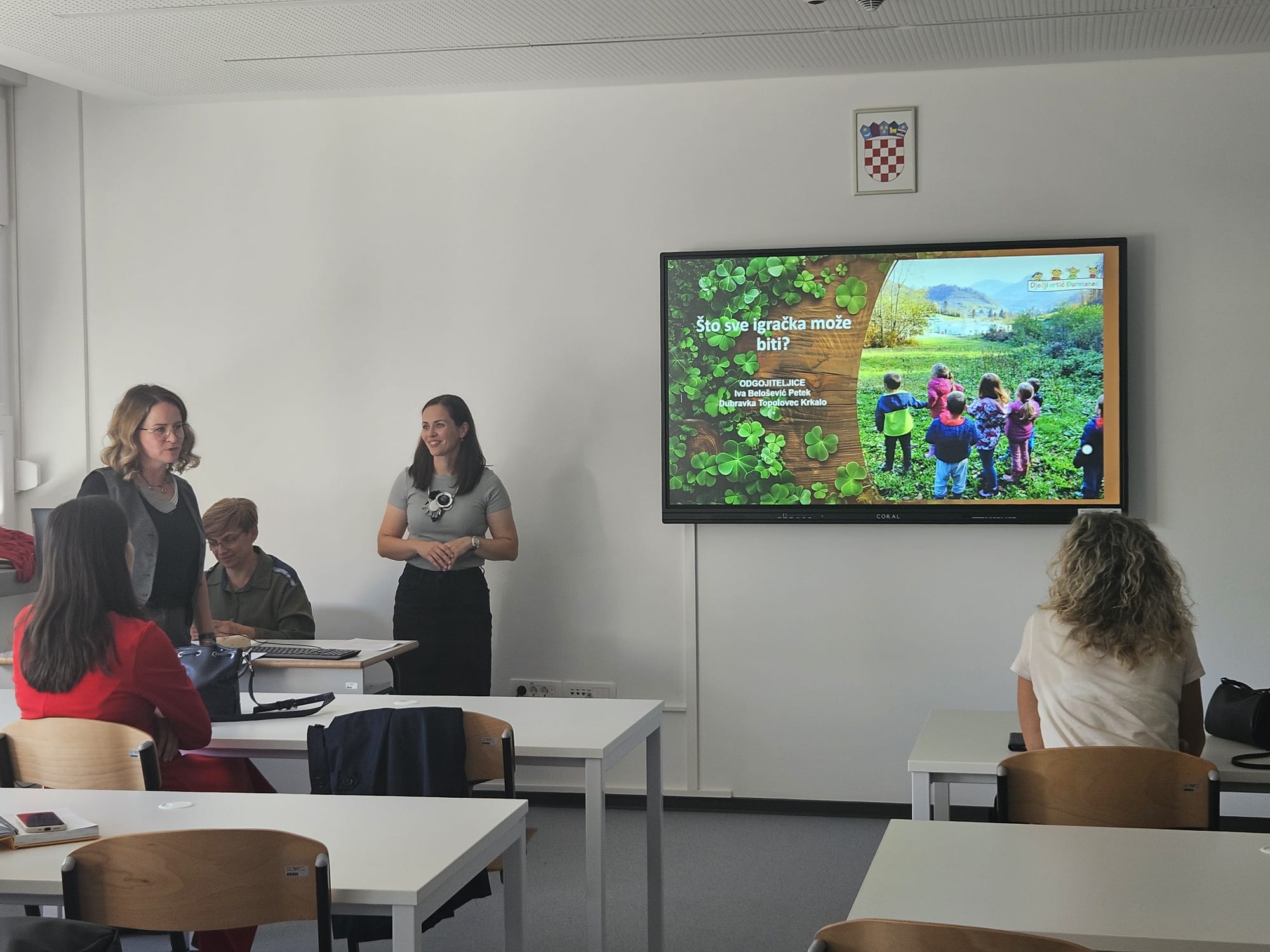 Na stručnom skupu predstavile su svoj rad pod nazivom “Što sve igračka može biti”, u kojem su istražile i prikazale kako djeca koriste igračke na kreativan, spontan i raznolik način – često daleko izvan njihove prvotne namjene. Kroz svakodnevne situacije u skupini, dokumentirale su dječju sposobnost reinterpretacije i stvaranja novih značenja, naglašavajući važnost slobodne igre i dječje mašte u razvoju djeteta.