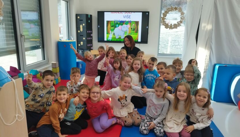 U dječjem vrtiću Đurmanec jučer je održano edukativno predavanje “Manje soli – više zdravlja”, koje je provela gđa. Anita Borošak Tadić iz HZJZ-a. Uz slonića Bimba, djeca su učila koliko je važno birati zdravije navike.