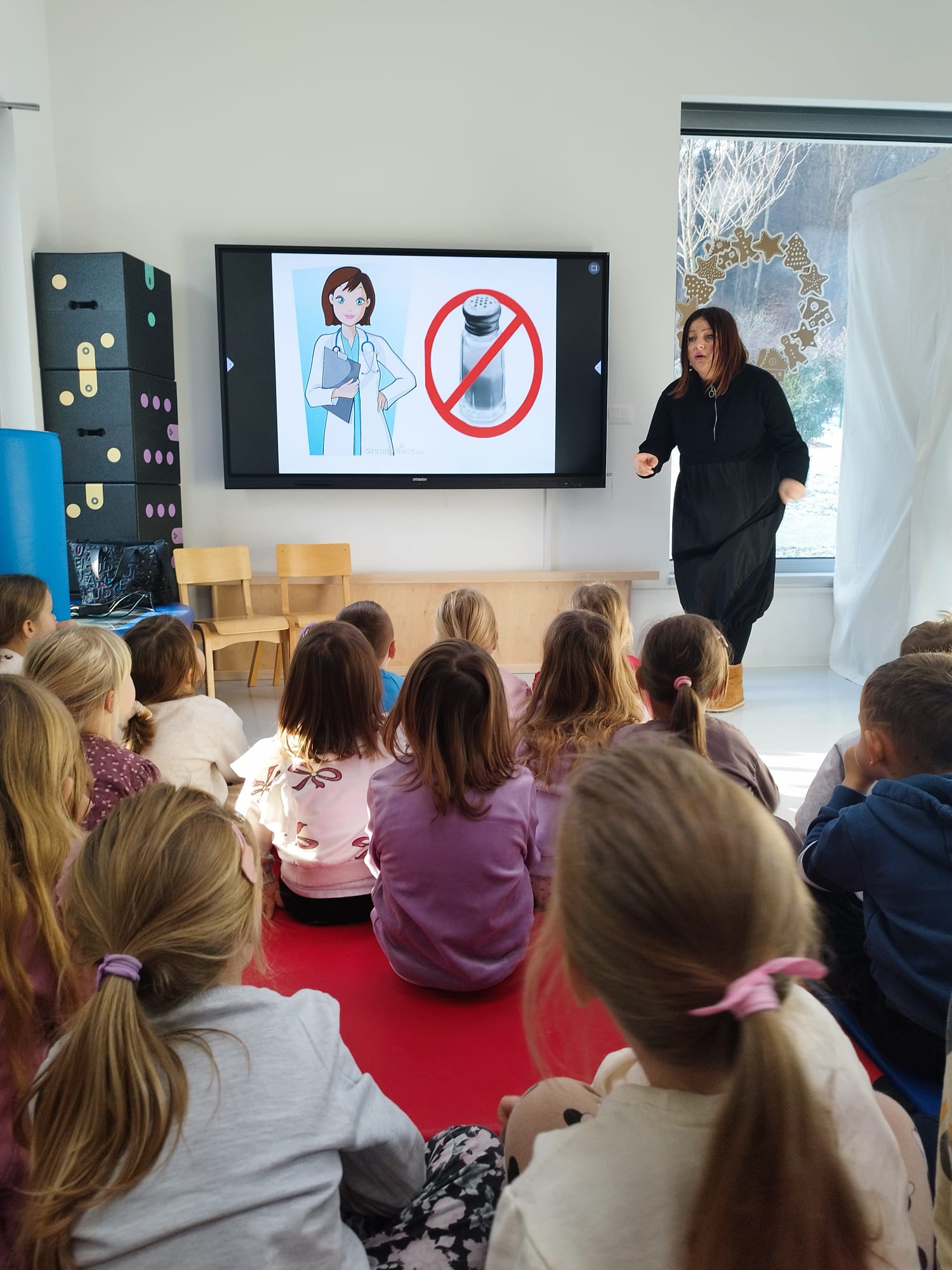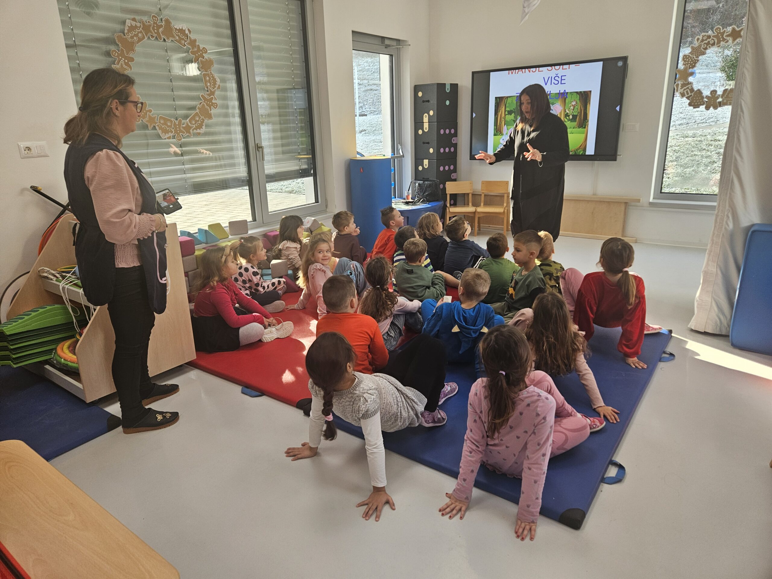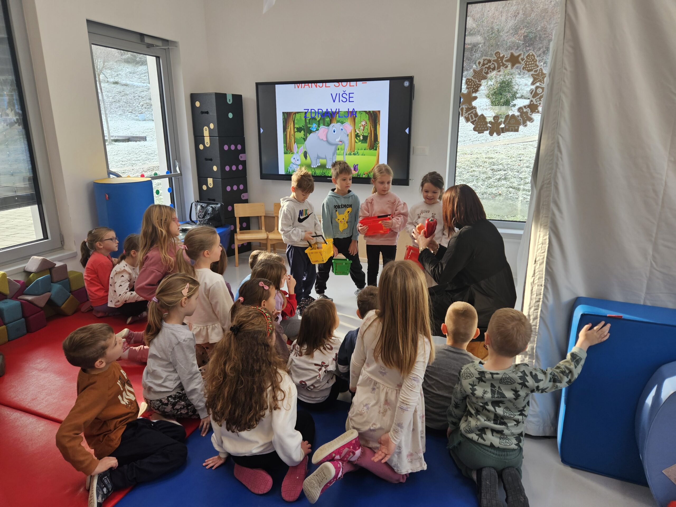 U dječjem vrtiću Đurmanec jučer je održano edukativno predavanje “Manje soli – više zdravlja”, koje je provela gđa. Anita Borošak Tadić iz HZJZ-a. Uz slonića Bimba, djeca su učila koliko je važno birati zdravije navike.