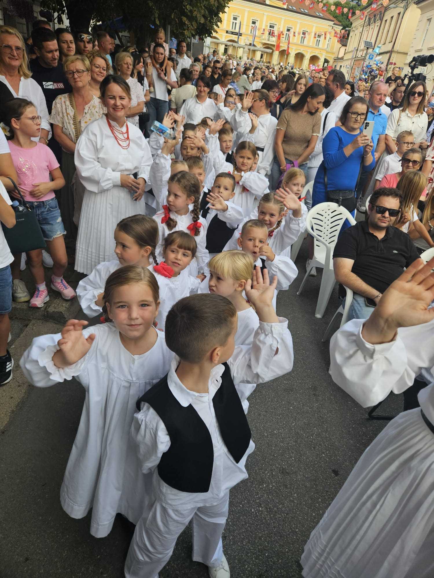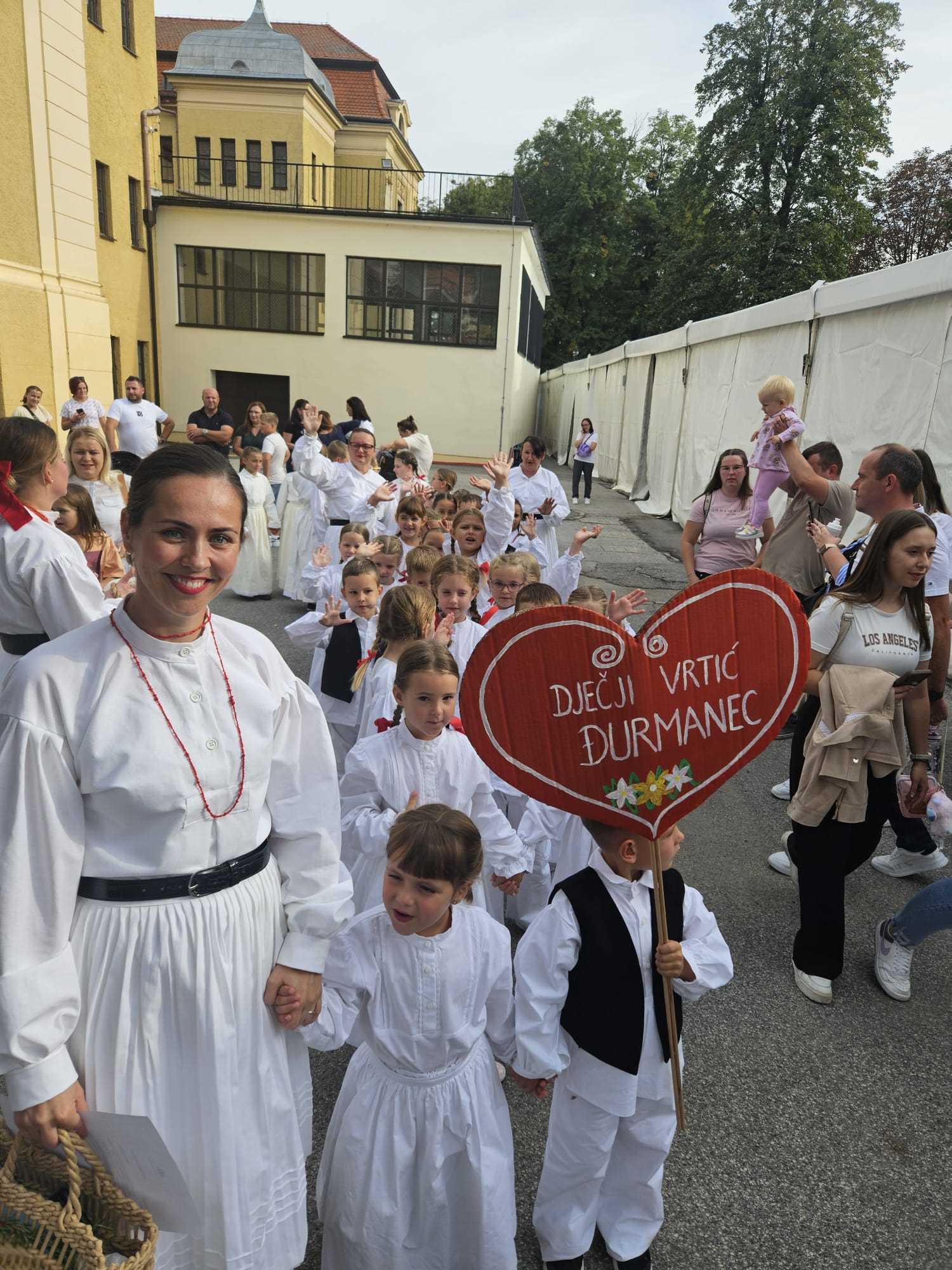 Odgojiteljice Iva i Dubravka te Ljiljana i Marija djecu su pripremale za nastup te su pritom zajednički uživali u istraživanju izgleda dječje nošnje – kiklje, lajbeca, škrljaka i rupca koji je krasio lica djevojčica i dječaka.